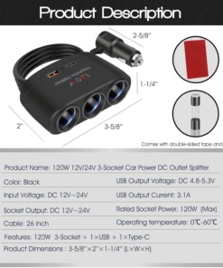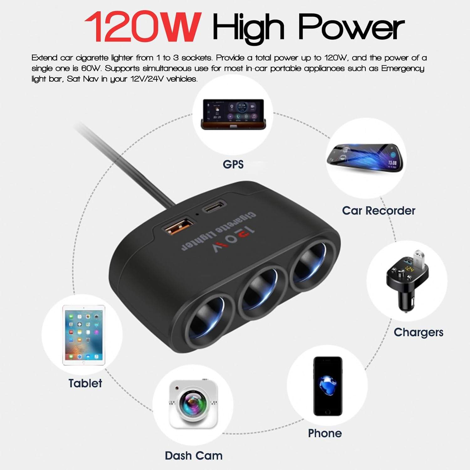 Ez az adapter 3 szivargyújtó aljzattal rendelkezik, amelyek széleskörű kompatibilitást és félelmetesen nagy, 120 W-os teljesítményt kínálnak. Akár radardetektort, autós DVR-t, légtisztítót , ülésfűtést vagy hordozható porszívót használ, ez az adapter 12 V és 24 V feszültséghez egyaránt alkalmas járművek.