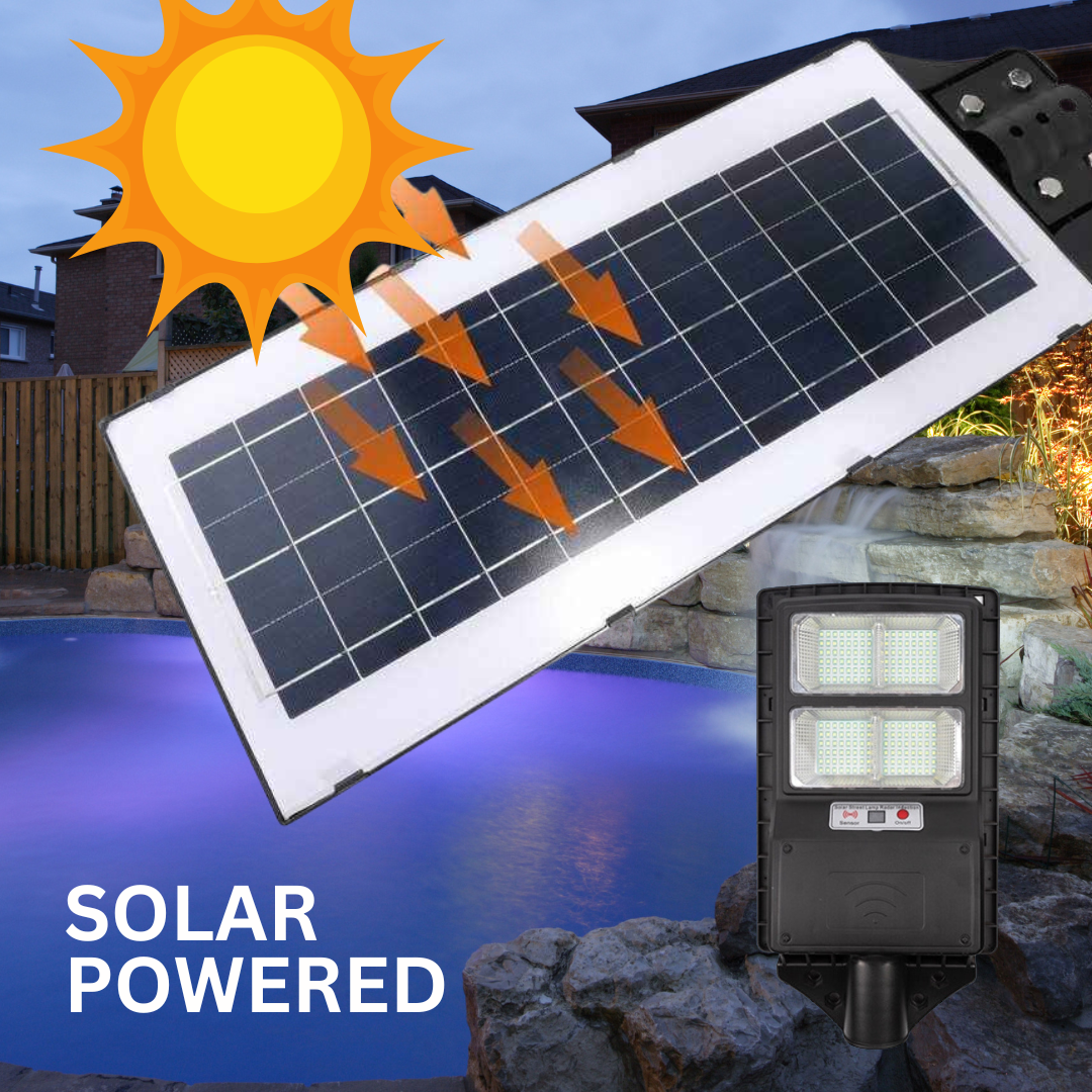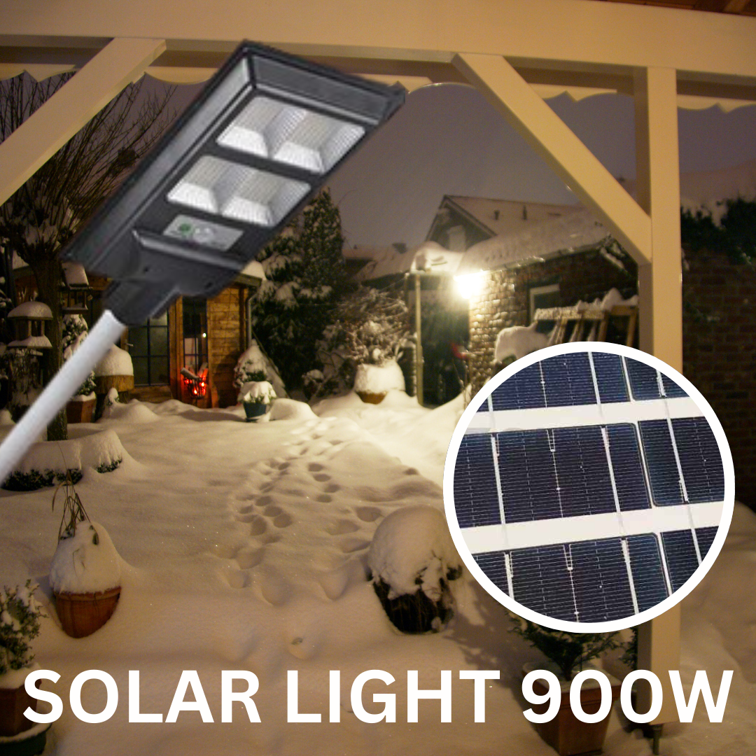 🌞Extra fényerejű LED szolár utcai lámpa konzollal, távirányítóval, mozgásérzékelővel, 900W