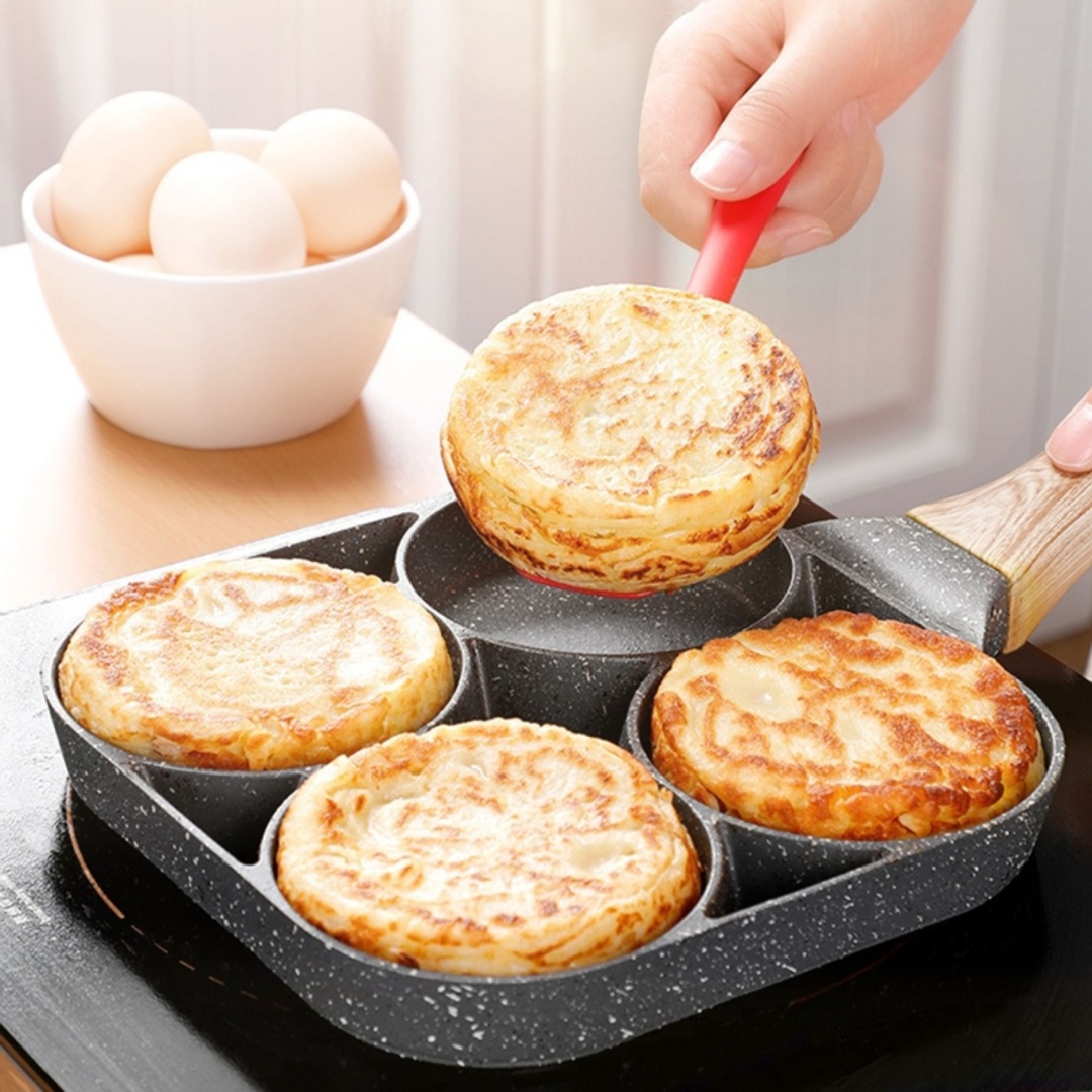 💕💕Ezzel a serpenyővel négy különböző ízlést lehet kielégíteni. Készítsen aranyos palacsintát és egyforma méretű tükörtojást gyermekeinek, sőt vegetáriánus vagy húsételeket is főzhet ugyanabban a serpenyőben anélkül, hogy hozzáérnének.