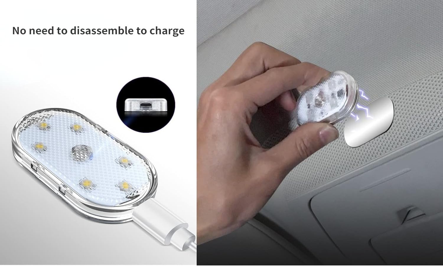 ⭐【Újratölthető mini autó éjszakai lámpa】 Kis méretű, beépíthető az autóba vagy háztartási világításként, nem foglal helyet, USB-porton keresztül tölthető, amely több mint 500-szor újratölthető, körülbelül 2 órán keresztül képes fenntartani a világítást.