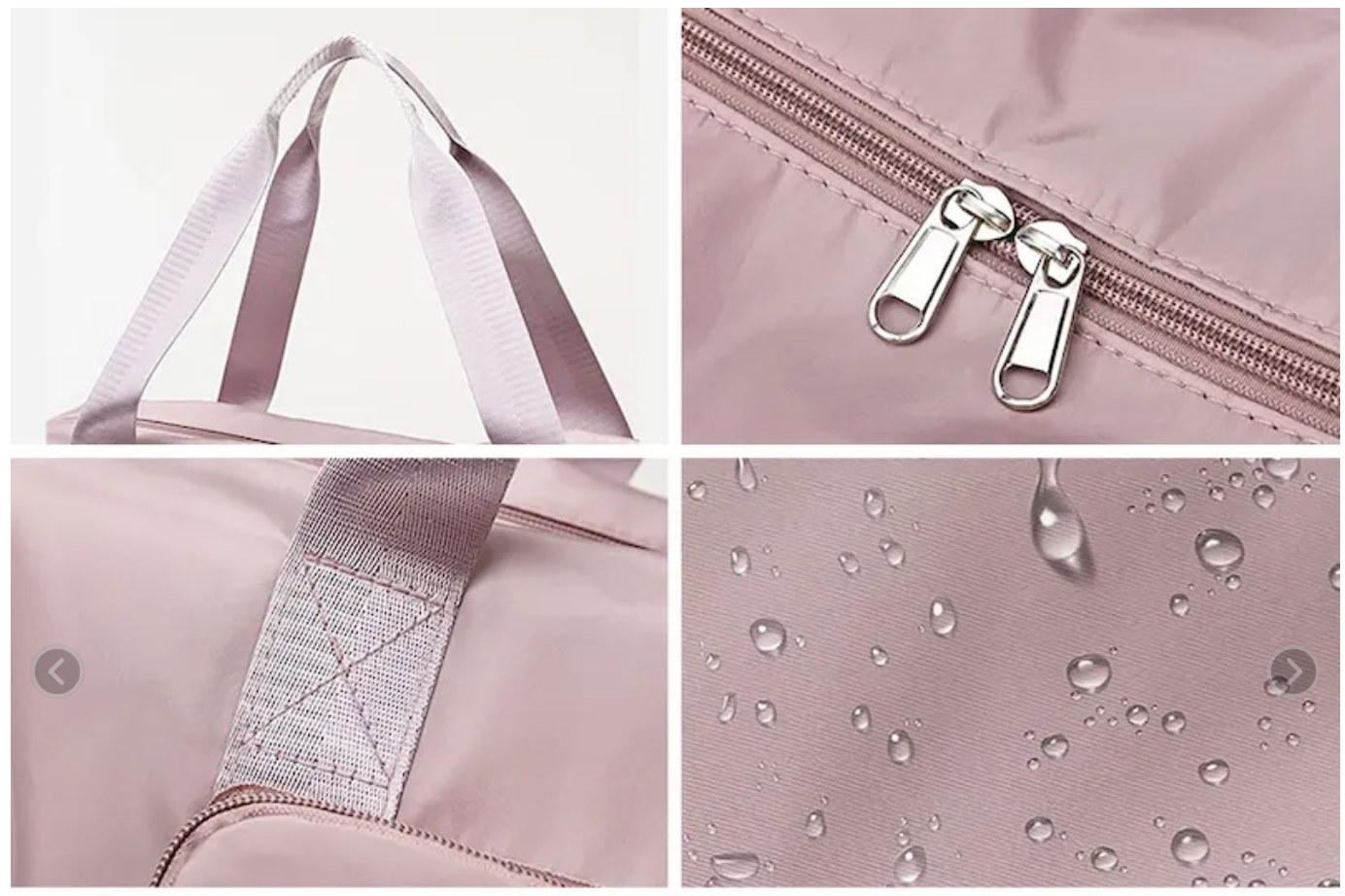 A táska nedves és száraz elválasztóval rendelkezik, amely tökéletesen alkalmas a piszkos vagy nedves ruhák és törölközők külön tárolására.