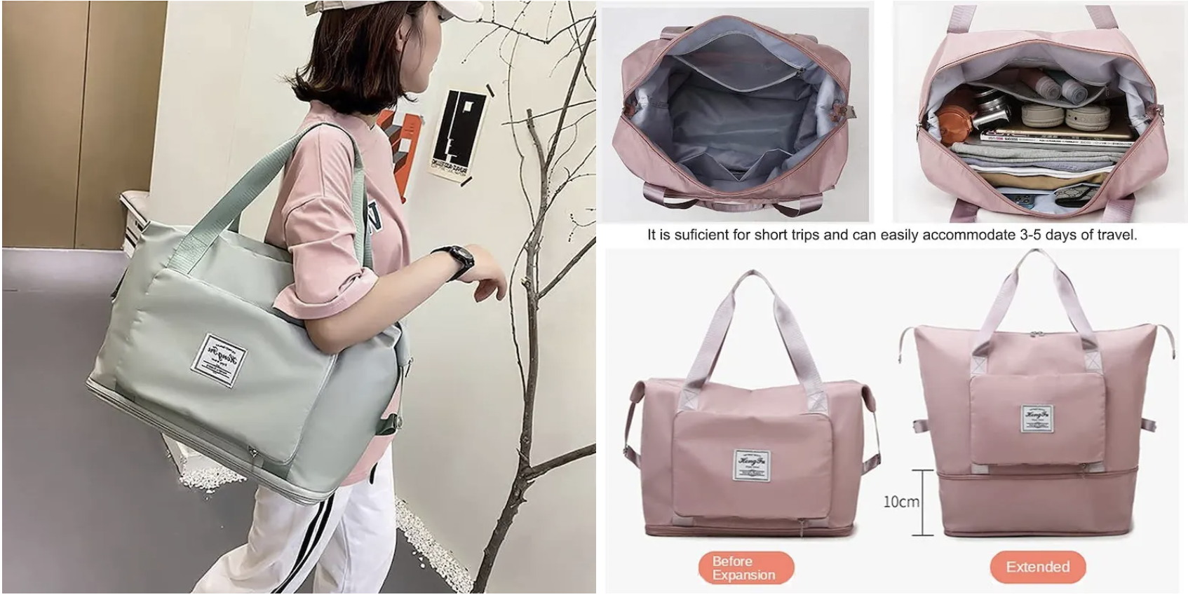 Az összecsukható utazótáska tágas befogadóképességével tökéletes megoldás minden utazási igényre, lehetővé teszi, hogy rendezetten tárolja holmiját, és szükség esetén könnyedén hozzáférjen.
